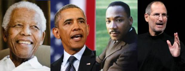 Nelson Mandela, Barack Obama, Martin Luther King Jr e Steve Jobs. Exemplos de grandes oradores.